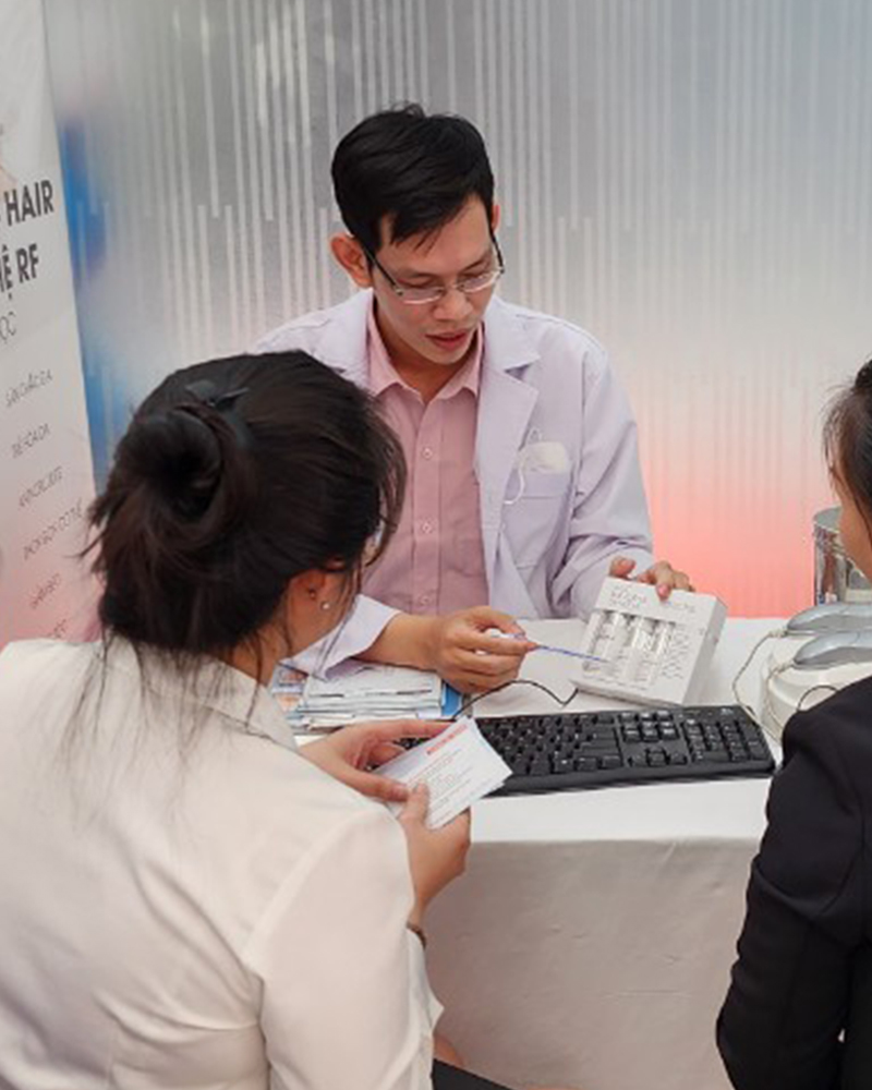 Thăm khám và đưa ra phác đồ điều trị phù hợp với từng tình trạng nám và da của khách hàng..